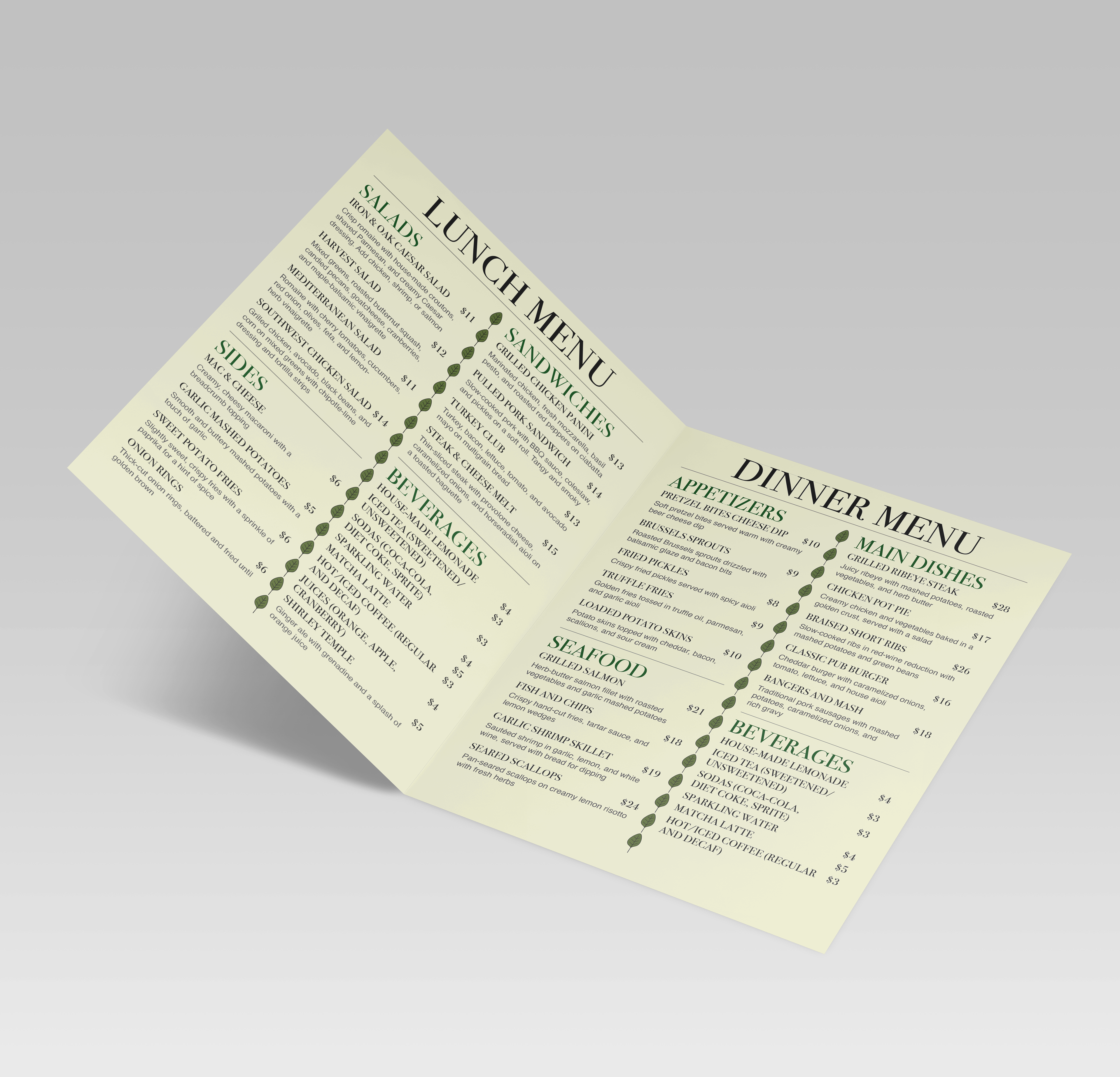 Brand identity for a fictional pub restaurant including logo design, menus, and website mockups.
